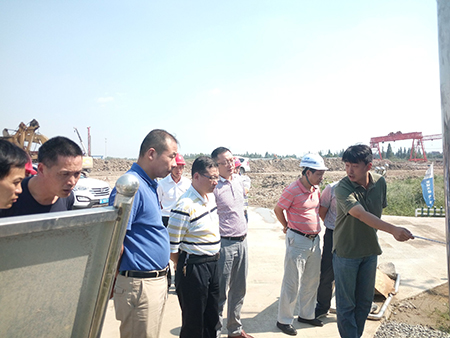 8月28日下午,省公路局副局長樓曉寅到杭州灣大橋北接線(二期)項目工程施工現場調研。 市交通運輸局副局長董學軍,集團公司副總經理李建國,嘉蕭公司相關負責人陪同調研。