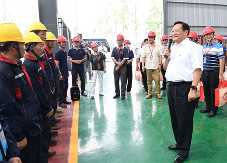 7月30日下午,市委書記張兵深入市區(qū)快速路環(huán)線工程(一期)土建1標(biāo)段施工工地,看望慰問(wèn)堅(jiān)守在高溫一線的建設(shè)工人。市人大常委會(huì)副主任朱海平,市委副秘書長(zhǎng)、市委辦公室主任趙建明,市總工會(huì)黨組書記、常務(wù)副主席嚴(yán)吉丹,項(xiàng)目推進(jìn)辦主任畢志強(qiáng)、副主任許海云,集團(tuán)公司董事長(zhǎng)李云鴻、總經(jīng)理張富標(biāo)、副總經(jīng)理李建國(guó)等陪同慰問(wèn)。