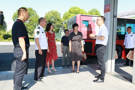 8月2日下午,嘉興市總工會黨組成員、副主席王春勤、總工會辦公室主任高峰一行深入基層一線,向高溫酷暑堅守崗位的公交一線員工表示感謝和慰問。集團公司紀委書記葉建英、集團聯合工會負責人、公交公司相關負責人陪同慰問。