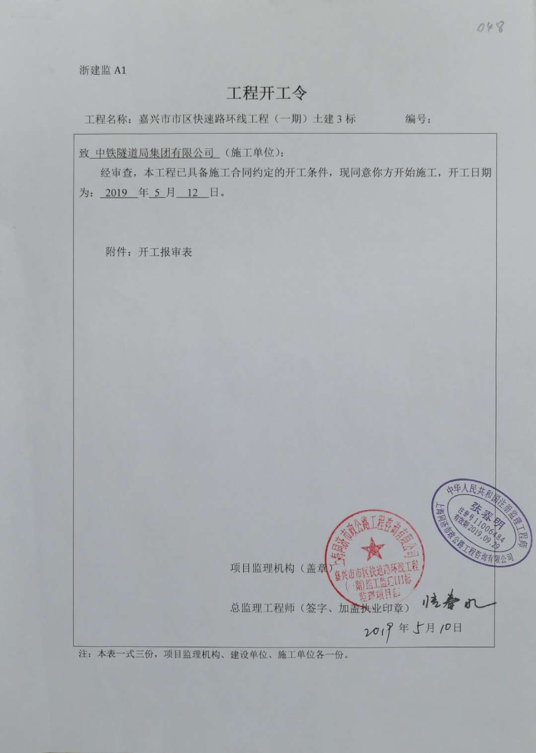 嘉興市市區快速路環線工程(一期)土建3標開工時間